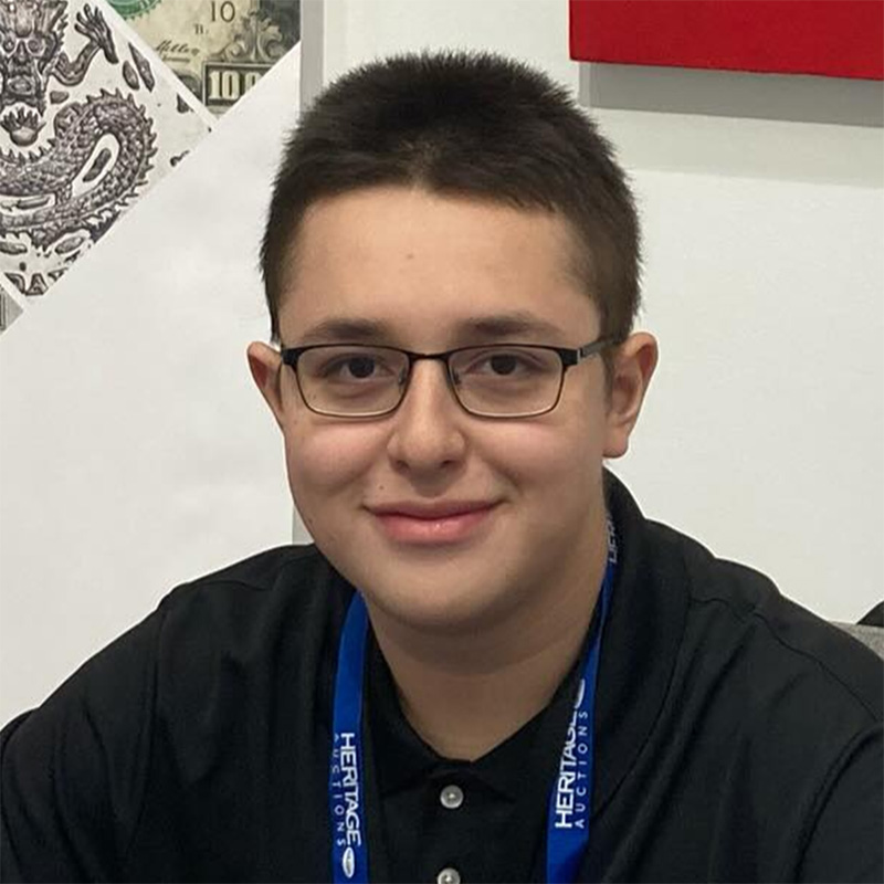 Benjamin began his numismatic journey in 2020 when his uncle took him to his first coin show in Houston and bought him an 1883 No Cents “Racketeer” Nickel and a Confederate States of America $10 banknote. A student at the University of Oklahoma, he will be working this summer at U.S. Coins and Jewelry in Houston. He is the recipient of the National Silver Dollar Roundtable scholarship.